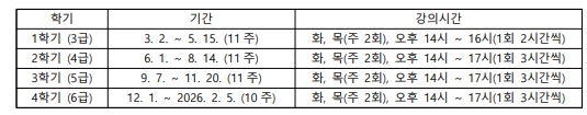 * 상기 강의 시간은 연수 사정에 의해 조정될 가능성이 있음