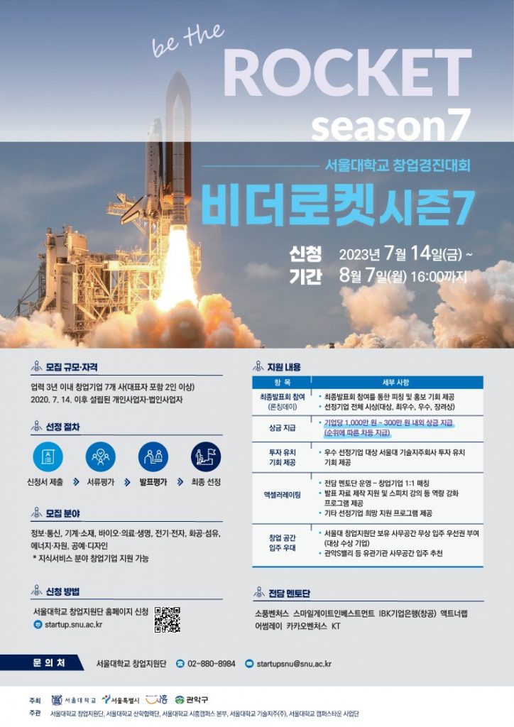 서울대학교 창업경진대회 ‘비더로켓 시즌7’ 안내