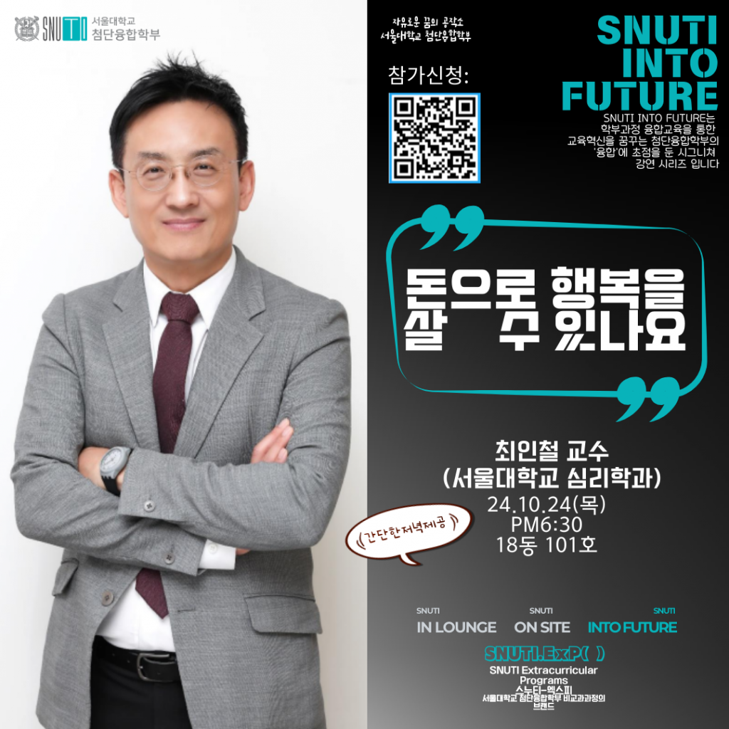 나. 주제 및 연사: 돈으로 행복을 살 수 있나요?(최인철 교수, 서울대학교 심리학과)