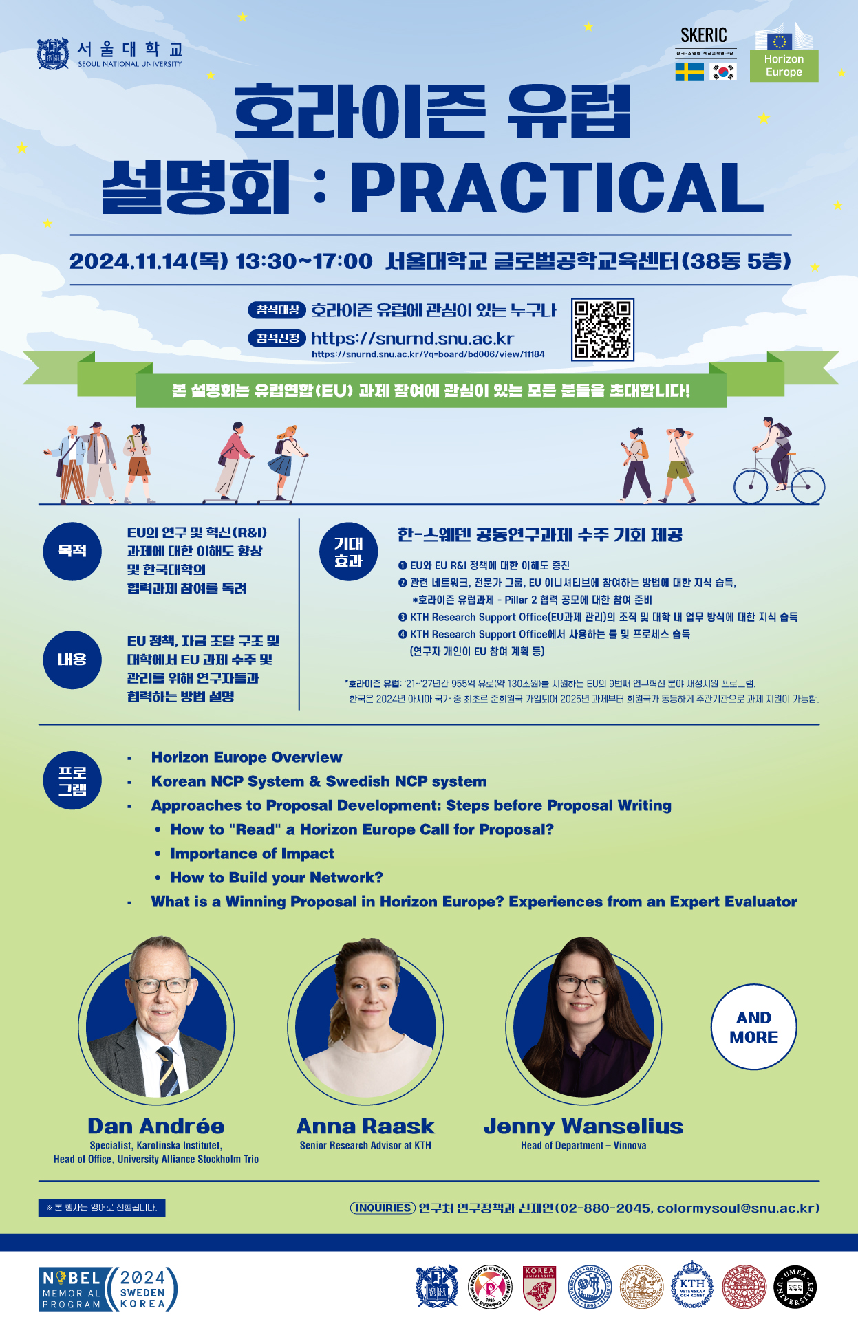 참석등록링크 2: 서울대학교: Horizon Europe Info Session: PRACTICAL