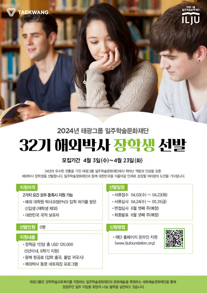 2024학년도 일주학술문화재단 해외박사 장학생 선발 안내