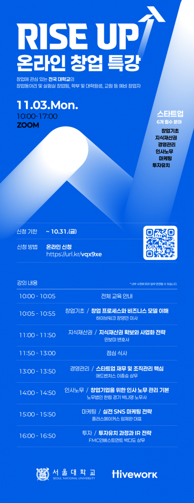 2025년도「실험실 특화형 창업선도대학사업」 ‘RISE UP 온라인 창업 특강’ 안내