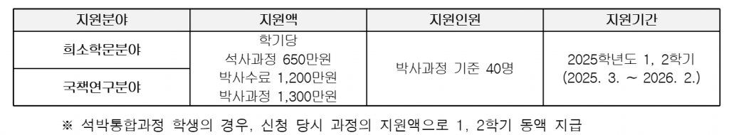 ※ 타 장학금 중복 수혜 금지(기초학문분야 학문후속세대, GSI 등 학내, 학외 모두 해당)
