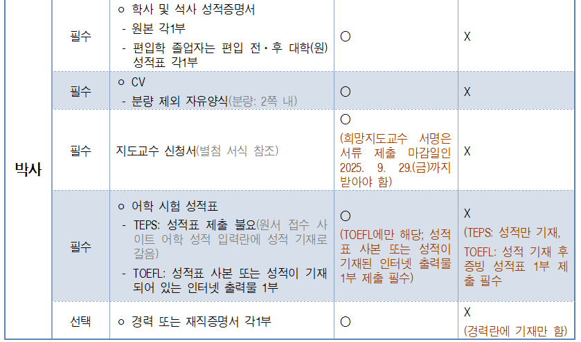 ○ 우편 제출은 지원서 접수마감일과 동일한 2025. 9. 26.자 우편 소인까지 유효 (* 혼동에 유의!)