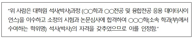○ 융합전공과 소속학과(부) 주전공의 수료 요건을 동시 충족하면 학위기에 다음 내용을 표기