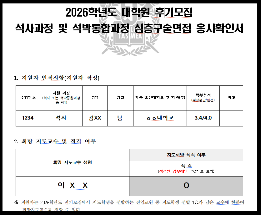 - 3. (석사과정 및 석사‧박사통합과정) 심층구술고사 응시확인서