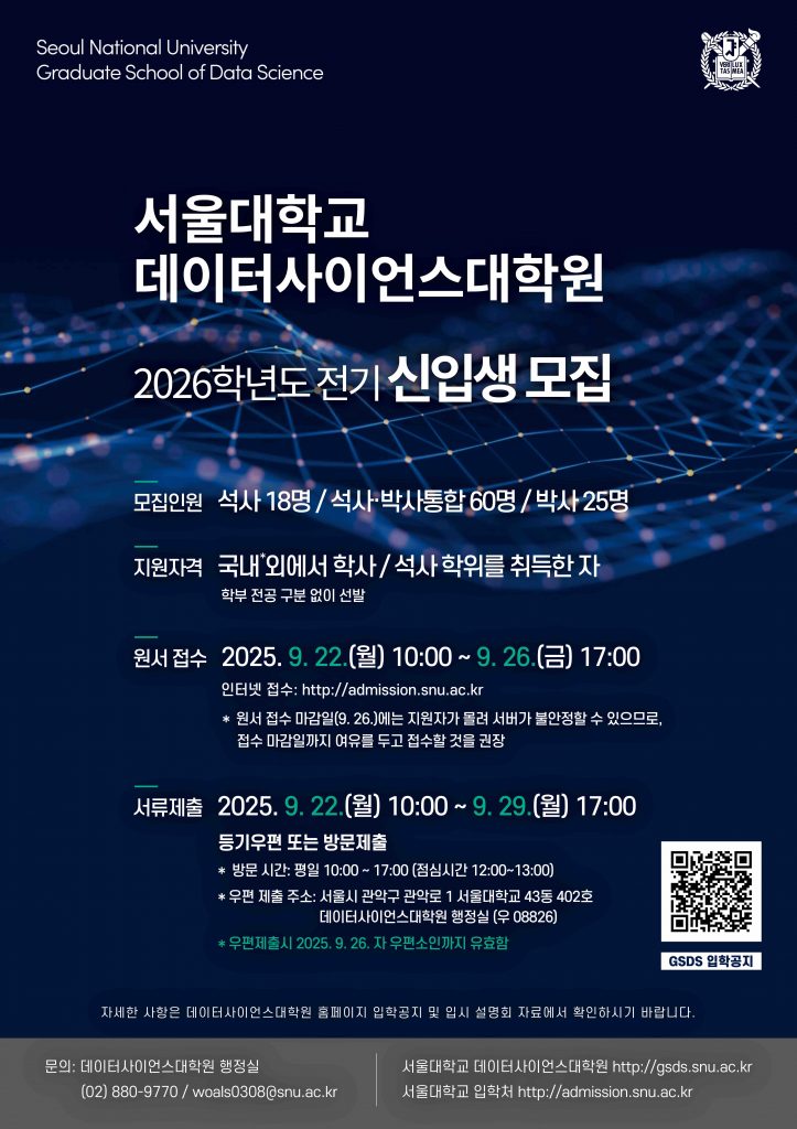 | 박사과정 | 데이터사이언스대학원 | 데이터사이언스학과 | 25명 |